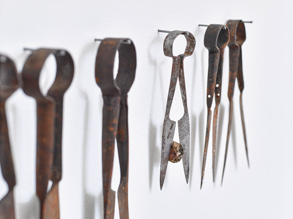 "De-Cure with Consequences. Nailed to the Wall in Rank and File." 2020, shears, pitch, nails, variable dimensions